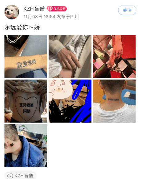 在KZH的抖音个人账号上,大家可以看到了许多关于他女友的信息。并且在他身上多处,都有新纹上的纹身。至少在外界的视角下,KZH属于被拿捏的一方。而一路过来一直都在关注KZH的粉丝,只觉得害怕。
