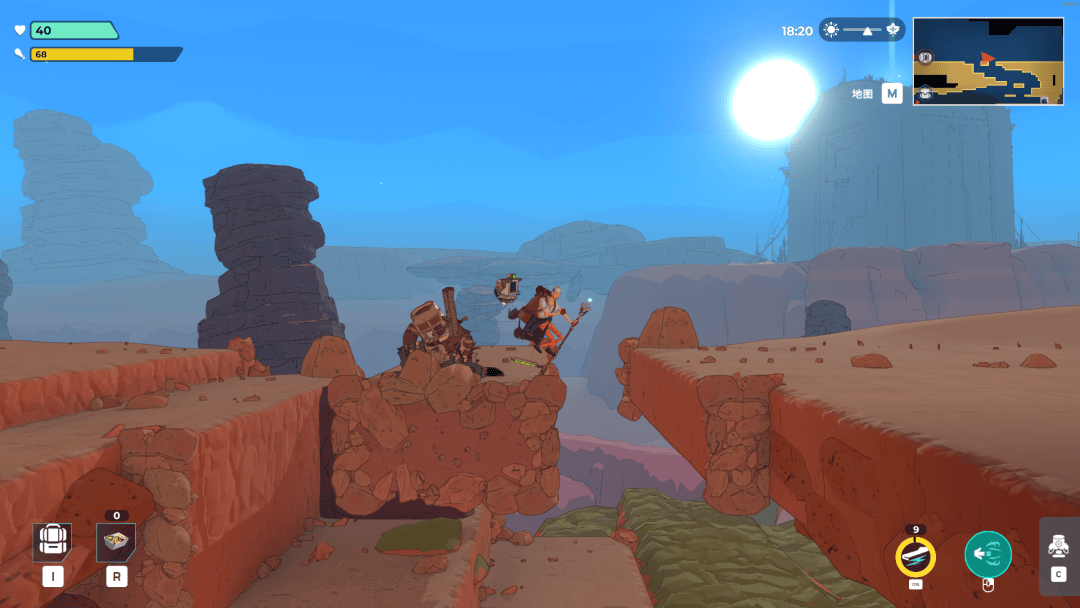 游戏的世界观设定也充分体现了这种气质。主角肯特在公元 10000 年的遥远未来解除冻眠,面对已然陌生的地球——严酷的末日世界处处充满危机,雷电、落石、怪物的攻击……甚至路边不起眼的小蘑菇都有可能把肯特电死。不过不用担心,基地里的打印舱会迅速制造出新的复制人,帮助肯特“永生”。在毒舌小机器人 O.R.B.的帮助下,玩家要努力书写“肯特开拓史”,学习耕种、生产制造并实现自动化,探索巨石碑中遗留的人类尖端科技,从零开始复兴文明。