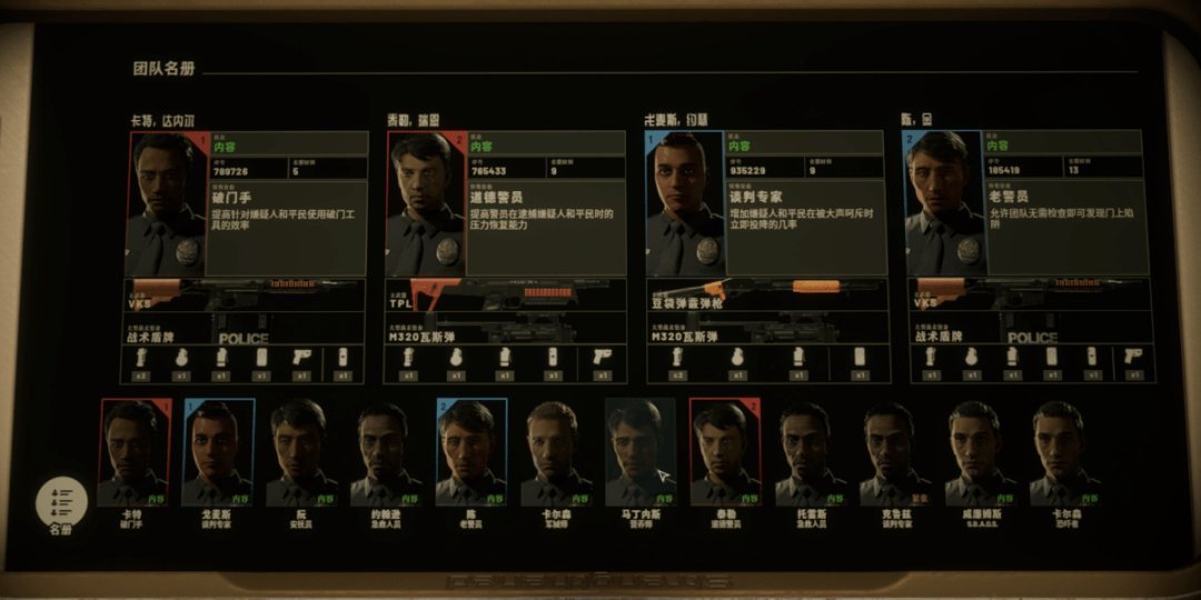 不过,通过非致命手段抓捕绝大多数犯人,并圆满完成任务,能够让队友的心态好起来。鉴于所有任务都可以反复攻略,当警局无人可用时,带上电击枪和胡椒水,反复刷第一个任务,全队的心情都会好起来。