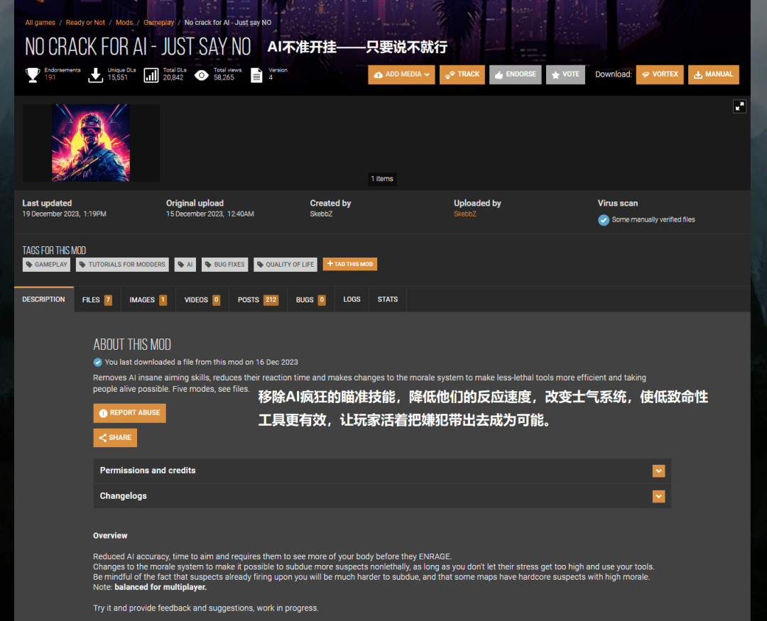 网站显示,这个模组的下载人数超过了1.5万人;《严阵以待》正式版的最高在线人数记录也就5.5万人(数据源自SteamDB)。结合Steam成就统计,1.0版本上线后五天内,游戏的通关率只有区区0.2%。