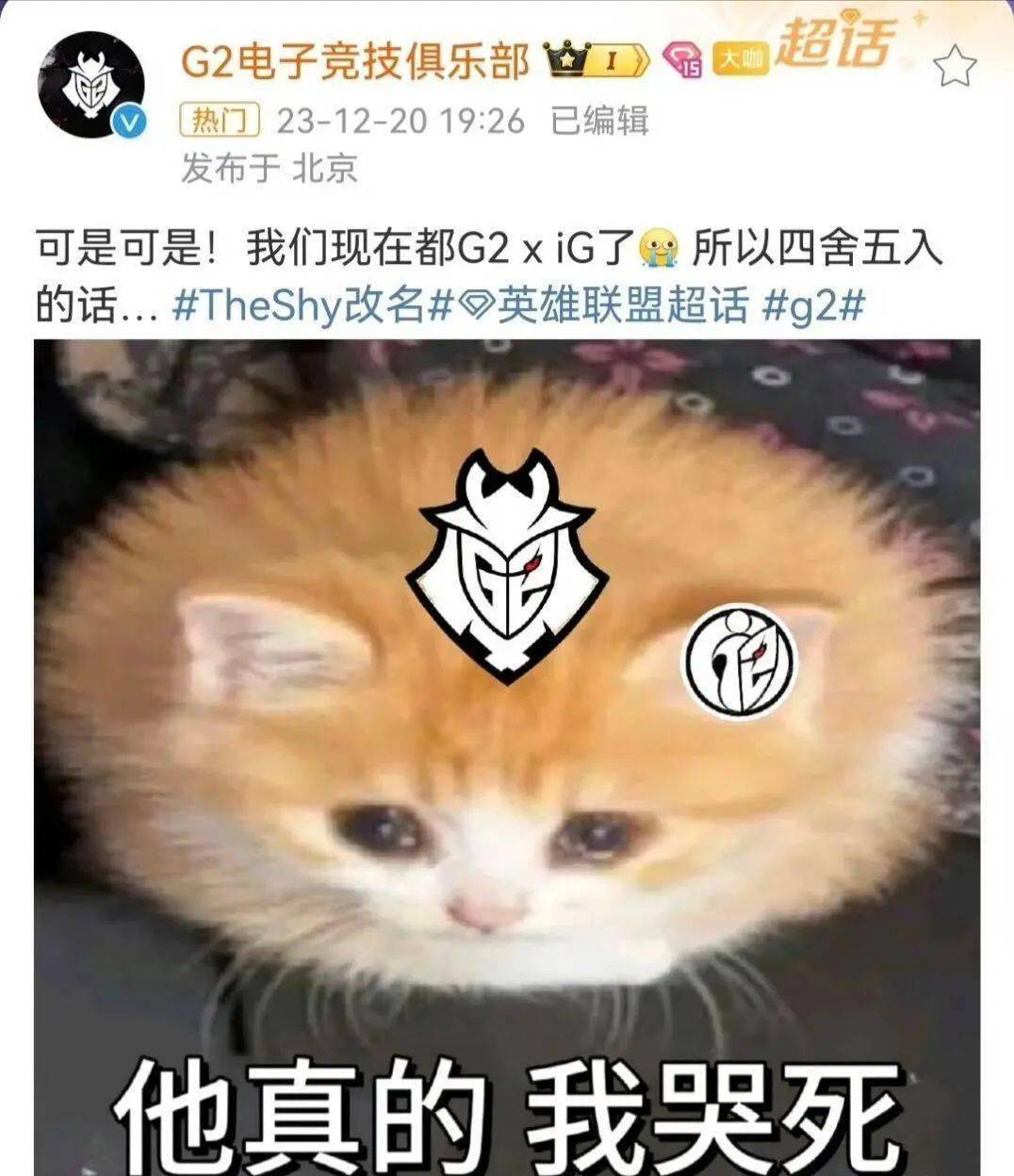 最有意思的G2也过来蹭了一波,因为之前G2和IG的其他分部合作了,换了个队名,所以G2过来蹭也不是完全没有理由,虽然沾的边儿不多,但多多少少是沾了一点。