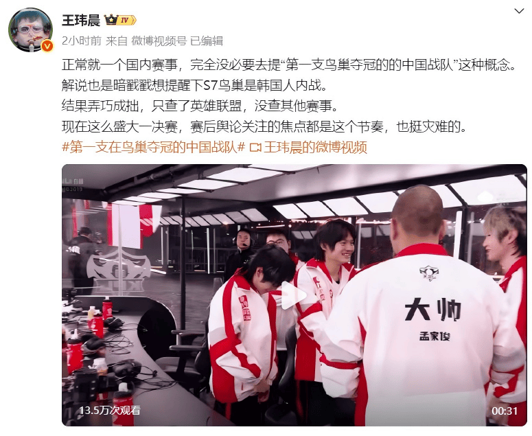 因此,有关“谁才是第一个鸟巢夺冠的中国队”节奏,迅速被炒上了,不少博主以及玩家都在调侃隔壁KPL偷鸡不成蚀把米,没做好解说的功课,张口就来,搞得好好的KPL比赛被带节奏。