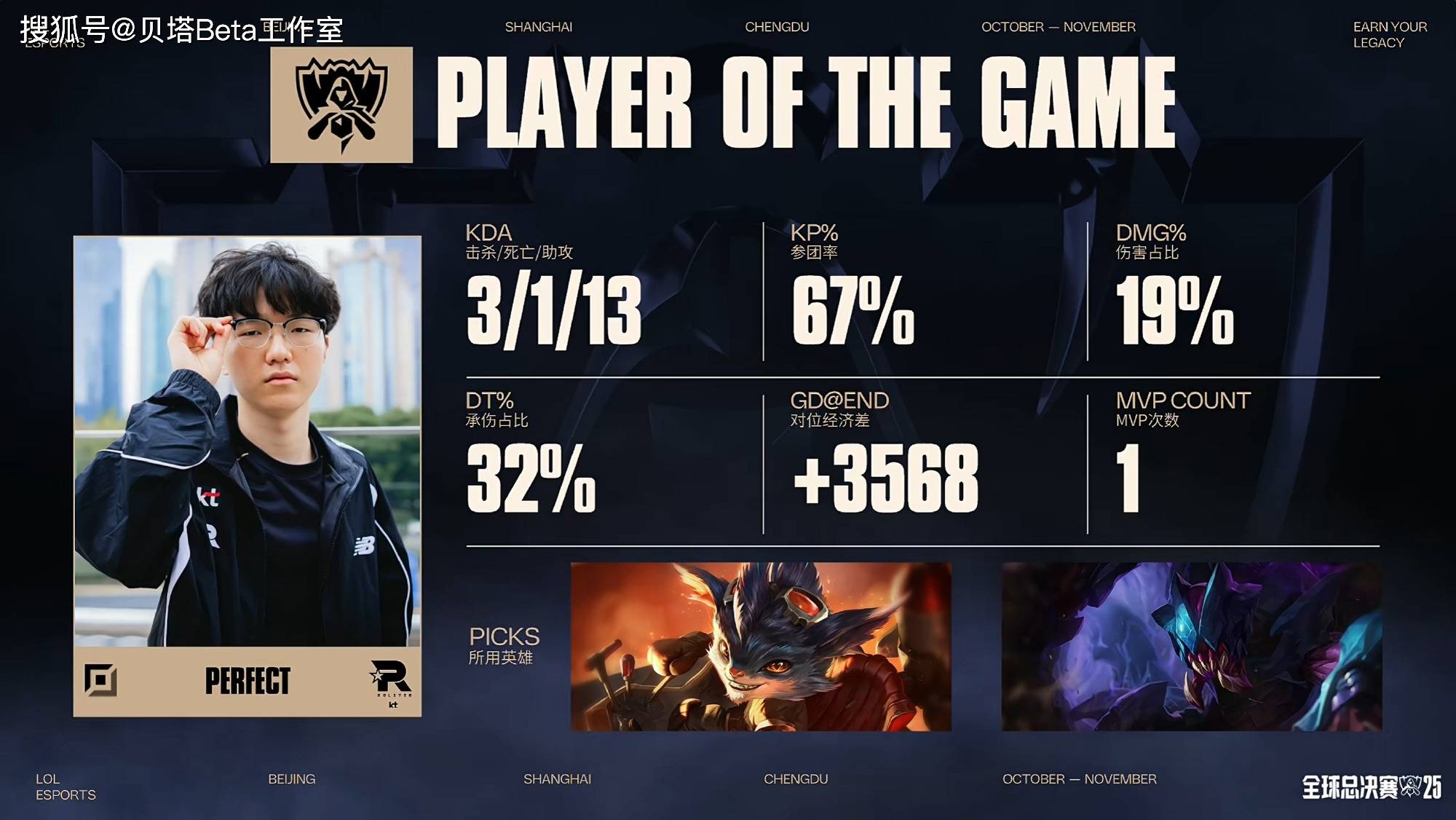 中期双方争夺小龙,Faker塞拉斯 开团虽然击杀Deokdam的EZ,但是KT上中辅收割打出2换5团灭T1。后期33分钟T1入侵野区,KT先抱团击杀Faker塞拉斯后,又在野区追死Keria璐璐,随后KT拿下第一条大龙。37分钟双方野区混战,Doran赛恩开团,Peter妮蔻反手R三人,KT打出2换2后,拿下炼金龙魂。40分钟Doran赛恩野区开团失误,自己被秒,KT拿下第三条大龙。最终42分钟KT在高地团灭T1后,拿下第二局的胜利。MVP给到了PerfecT的挖掘机。