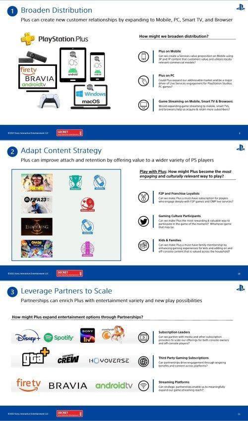 失眠组泄露事件的影响仍在扩大,目前有玩家发现了泄露的文件中似乎包含了透露PS+未来发展计划的部分内容。一串PPT显示索尼已经制定了一项战略,准备将该服务引入智能手机、浏览器、智能电视以及PC,PlayStation将这一业务扩展称为“服务3.0”,为了实现这一目标,PlayStation将寻求其他订阅提供商的帮助。