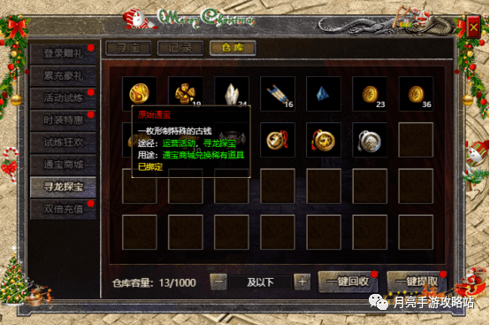 以上就是原始传奇(同款游戏:风暴之争、传奇之战、英魂传说)三端互通福利手游中的寻龙探宝活动攻略,更多游戏攻略、包服可以关注图片右下角【月亮手游攻略站】,我们下期再见。