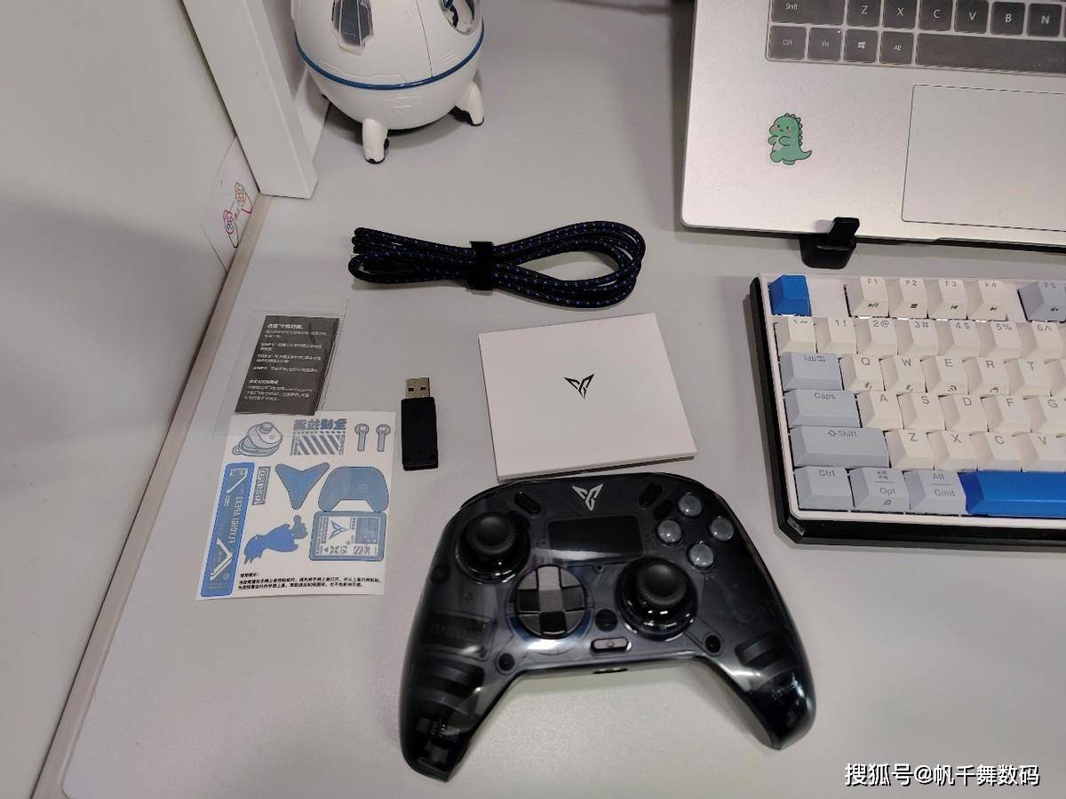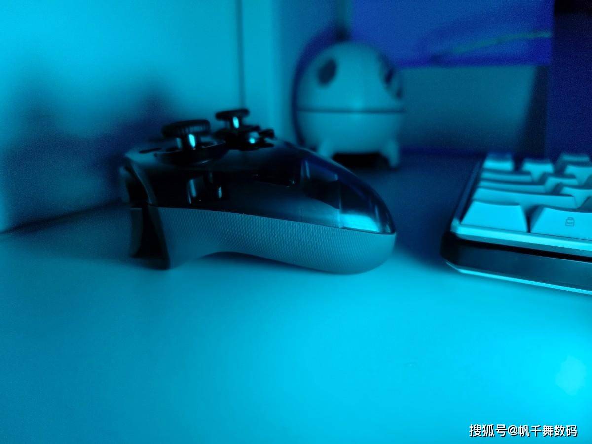 此外它的四颗宏定义按键在游戏中也是一很大帮助,能够打出更厉害的配合。这款手柄的外观设计还是不错的,黑色的半透明的盖壳,包装盒里面还送了一些贴子和可以自定义的灯牌,可以让手柄更加个性化。不好的一点就是特别容易沾染指纹,随便一拿全是指纹印,又是黑色的特别明显。
