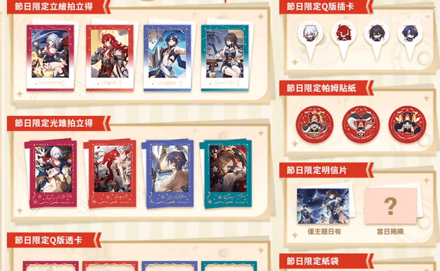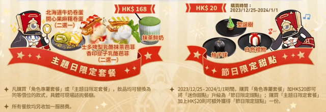 从官方放出的宣传图来看,这次的菜品很精致,活动周边的种类也很丰盛。如果你在圣诞节到元旦节期间到主题餐厅用餐,除了可以买到主题日限定套餐外,还可以购买节日限定甜点一份,对于可以到现场消费的玩家来说,也算是一个小惊喜了吧?