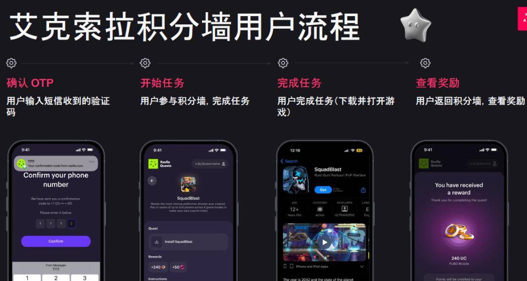 例如 Xsolla 的积分墙就将任务的设计更加细化,为 IAA 和 IAP 搭建桥梁,使两种变现方案互相结合。Xsolla 的积分墙除了任务和奖励之外,还给用户设计了专属账号统一管理奖励。让用户在积分墙上也能发展出一个属于自己的“任务主线”,再通过短信等措施实时提醒用户跟进任务进度。让喜欢做任务的用户更爱做任务,同时也进一步触达有意愿付费跳过任务的玩家,让整个从免费到付费的转化过程更加顺利。Xsolla 方面的数据显示,将积分墙作为其留存策略一部分的开发者实现了总支付交易量增长 37%,收入也增长 5%。