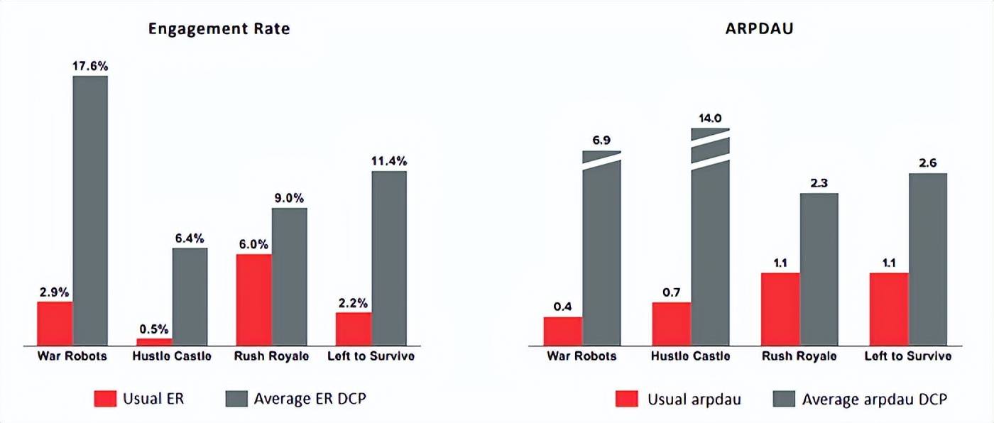 荷兰游戏厂商MY.GAMES的统计显示,加入能够让奖励翻倍的积分墙后,旗下游戏的互动率和ARPDAU都有显著增长 | 图片来源:MY.GAMES