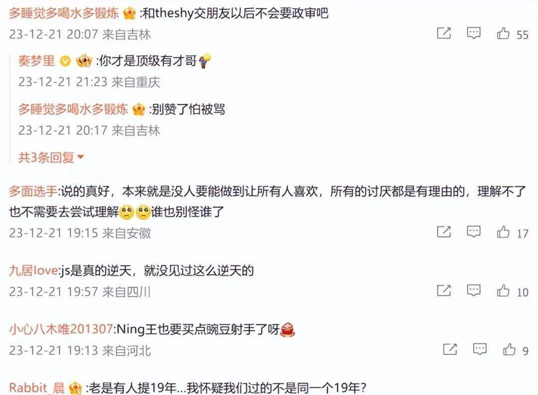 cp粉猜测两人要参加同一个活动,十分开心,而两人的唯粉有些受不了,尤其是TheShy粉丝。这位选手是世界赛参赛选手,亚军上单,ning做了什么就能跟TheShy相提并论?这段时间TheShy粉丝很不待见ning,觉得他在蹭这位上单的热度。