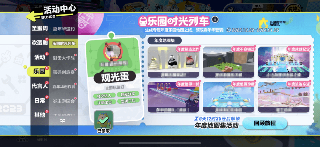 在过去一年,无论是登岛后「抱一抱」就开启的无压力社交,还是前往「乐园」体验海量UGC地图,「蛋仔岛」不仅是5亿用户一站式的「快乐老家」,更承载了数不清的情感交互与链接。在乐园嘉年华的预热H5中,以集体回忆为「起始站」,「乐园时光列车」沿着时光隧道从过去缓缓驶来,带领用户穿越一段段凝结了欢乐与美好的瞬间。纵览这一年的收获与成长,掀起定制化的「回忆杀」之余,还贴心地根据每个蛋仔的2023年乐园之旅生成趣味蛋仔特质「蛋格」,并发布专属的「年度地图集」,刺激用户以社媒分享的形式打开病毒传播通道,将对12月29日的「乐园嘉年华」预热拉满。