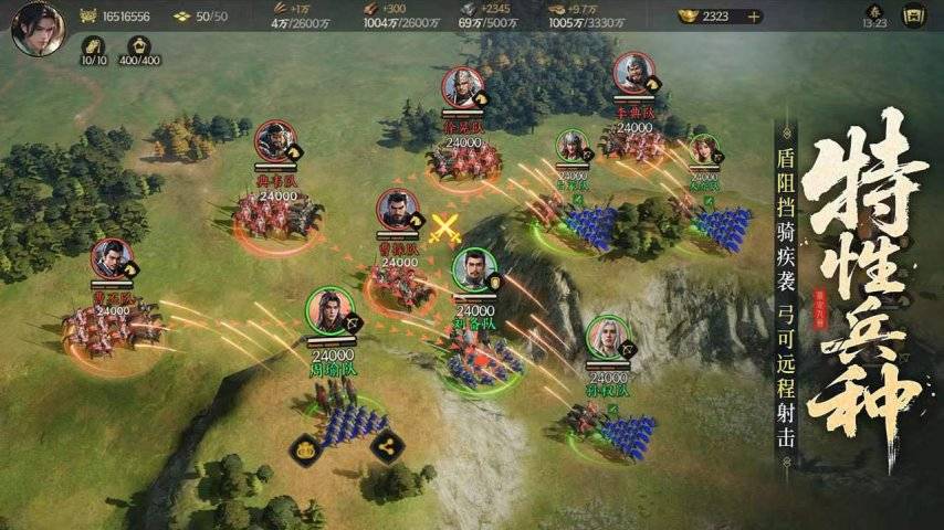 这款游戏最大的亮点在于其“真RTS战中操控”的核心特色,这在主流的SLG手游中是较为独特的。与常见的自动或半自动战斗模式不同,《三国群英传:策定九州》允许玩家在战斗过程中自由操控军队。