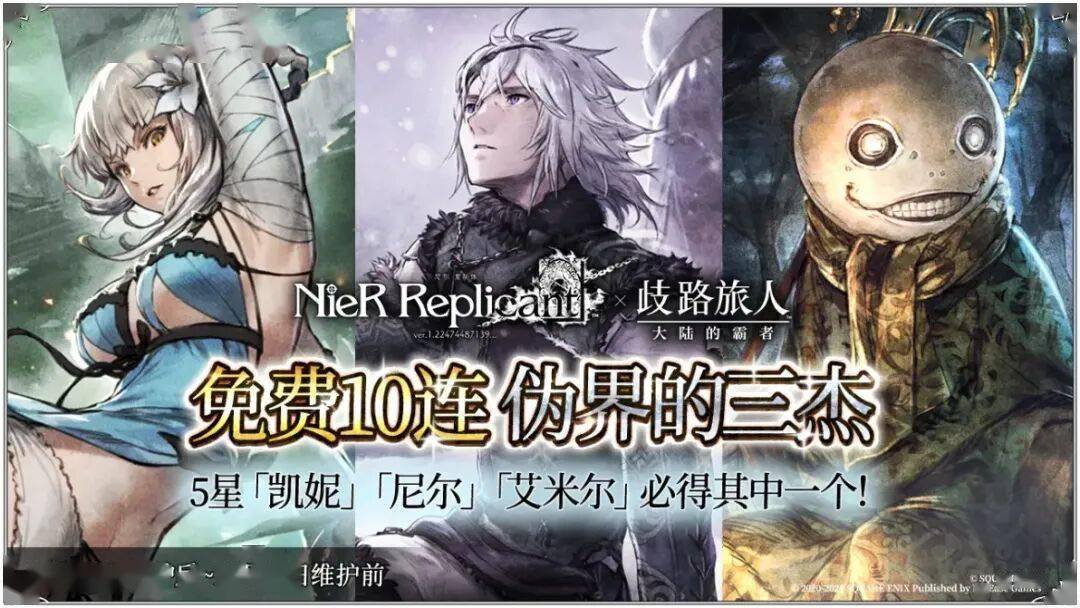 4、《尼尔:复制体》联动开启!“NieR:Replicant联动引导-伪界的三杰”免费10连开启!活动期间所有旅人均可进行一次免费十连引导,必得商人“尼尔”、星官“艾米尔”、游侠“凯妮”中的一个★5角色。