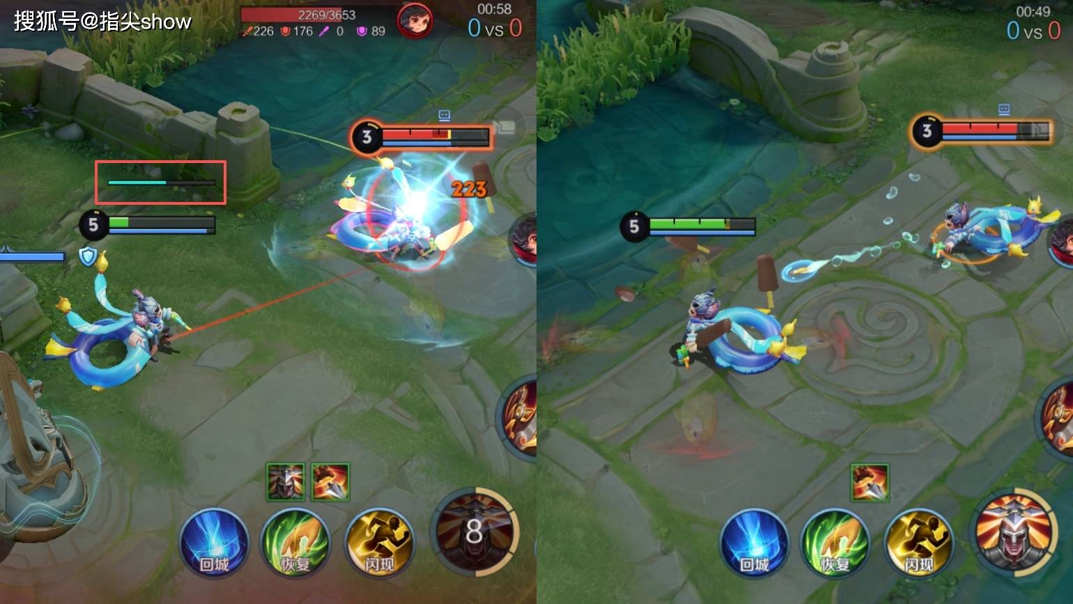 而敌方视野自己则看不到,这一点策划还是给做了保护的,如果敌方视角也有爆炸的进度条就不一样了,就像李白可以用二技能无敌来躲,调整前需要预判,看飞镖闪烁,但很难精准捕捉到那一帧,真有了进度条,那就不算威胁了。