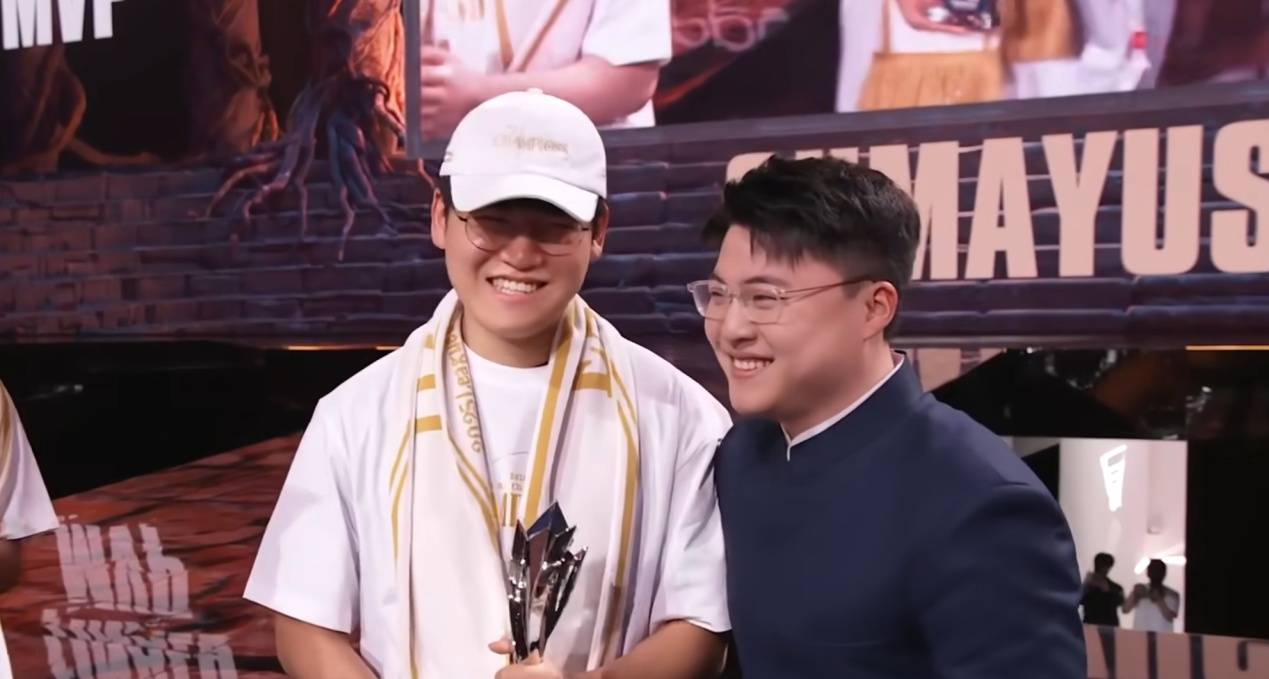 除此之外,S15全球总决赛的颁奖环节中,Uzi上台为Gumayusi颁奖的画面也在国外火了,因为Uzi在欧美那边拥有极高的粉丝支持量,所以觉得Uzi这波颁奖是排面拉满了,而且最关键的是Uzi和Gumayusi同台长得是真的很像。