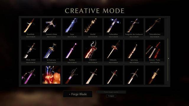 创造模式 —— 自由铸造属于你的神兵利器,海量剑身、刀柄、符纹与材质任你选择,尽情发挥想象力。