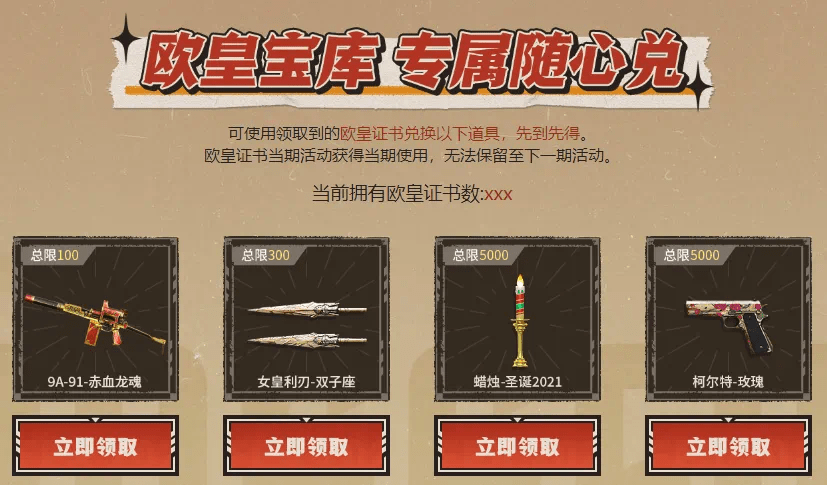 谁若能得到欧皇证书,那必然是欧皇本皇了,拿着欧皇证书,打开欧皇宝库,玩家可以随心兑换自己想要的神器。