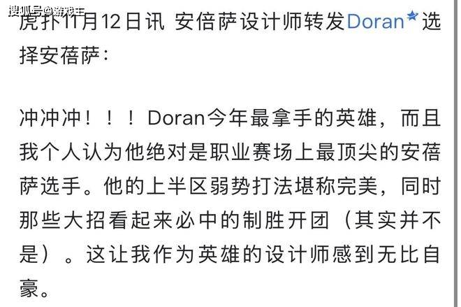 回到lck的直播过程当中,doran就公开透露了自己的冠军皮肤选择,他表示,能选冠军皮肤很开心,心里最想做的已经确定了,因为T1冠军皮肤,所以我选择更有T1感觉的冠军安倍萨,酒桶也可以说是我的招牌英雄,但是考虑到队友的话还是觉得安蓓萨更为合适。随后,他的这则消息也被官方的设计师转发,并且表示是多兰今年最拿手的英雄,而且个人认为他绝对是职业赛场上最顶尖的安蓓萨选手。这个位置已经基本确定了,其他位置还在纠结但也有一个大概的轮廓。