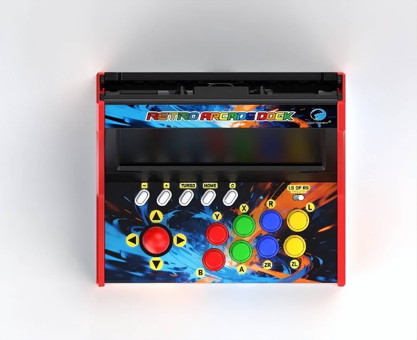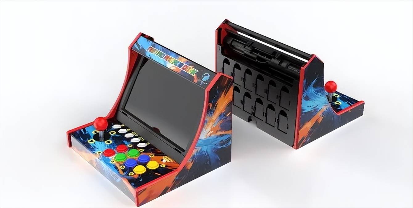 这个底座可以把Switch或Switch2卡在其中,使用底座上的摇杆和街机按键来游玩游戏,体验街机厅的感觉。