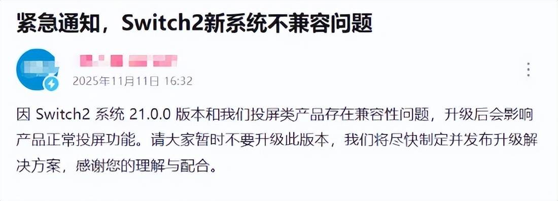 值得注意的是,这次Switch2更新后,似乎产生了对第三方外设的兼容性问题。