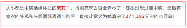 别以为抽“锦鲤”只是现实当中购物平台的专利,事实上《逆水寒》从2022年就已经开始给游戏内的玩家们送出了这重福利,当时中奖玩家购物车中的坐骑宠物、技能外观、庄园图纸……加起来心愿单总额达到了223179元宝,最后成功0元带走。