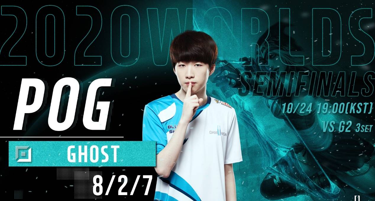 Ghost在休息一个春季赛之后,DWG战队选中了他,自此开启了夺冠之路,在全球总决赛的舞台上,DWG以强大的统治力一路过关斩将,在决赛中击败来自LPL赛区的SN,成功拿下世界冠军。