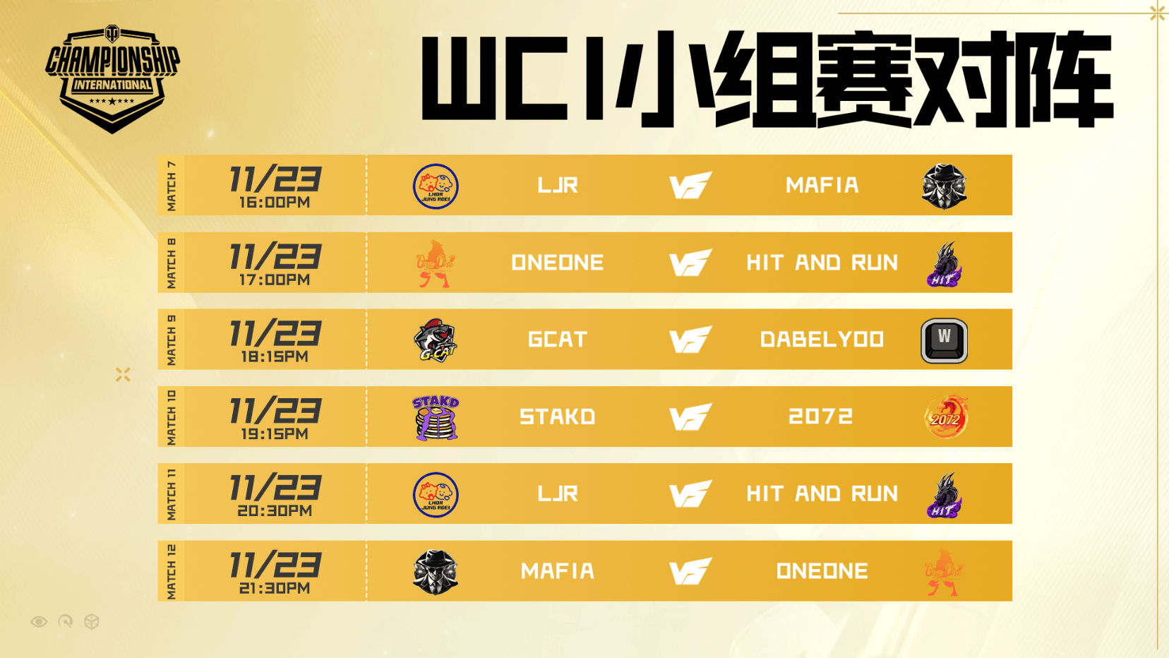 在下周六,也就是11月22日的时候,《坦克世界》就将开启今年的WCI赛事。当天进行的是小组赛,会决出各大战队的排名,随后在29日和30日进行决赛,决出冠军。
