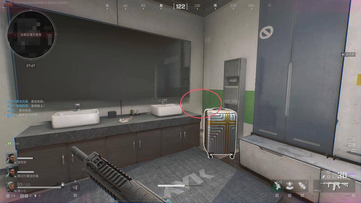 第四个:黑室机器旁,在这里,有个空隙,刚好直接对准了蓝室过来黑室准备上总裁的人,大多数人只会留意那边的人,而不会注意这个地方,这就给我们偷屁股有了机会,一旦开火,大多数人都很难反应过来就已经被我们给偷了,不过,这个点位唯一一个难点,就是你偷完之后,大部分都很难舔包,因为没人会三个人一起冲。