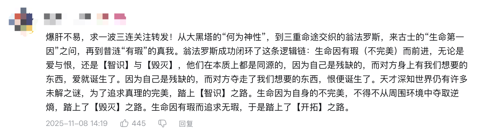 看完玩家对翁法罗斯内核的解析,真的要感慨崩铁编剧对剧情逻辑的把控和编写水平太高了,而且可挖掘的内容多,还能扩展去了解更多的知识,玩游戏玩得要长脑子了。