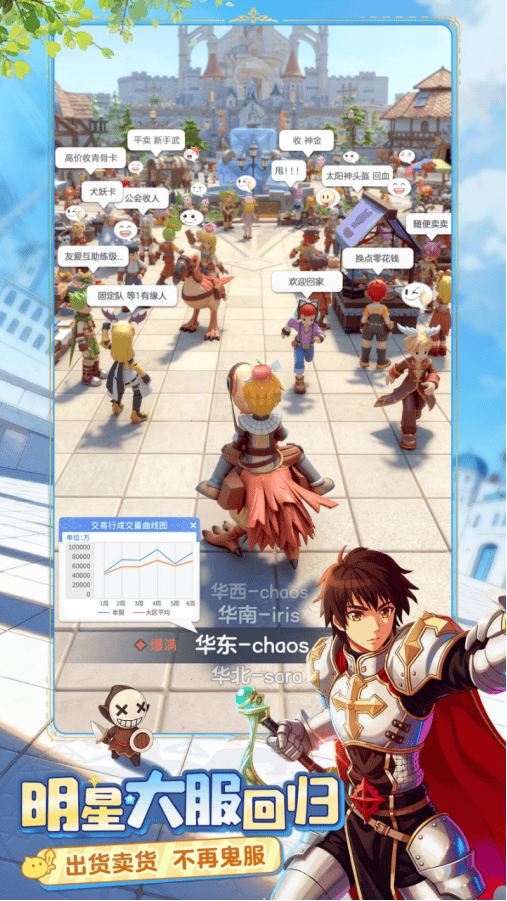 同时,端游经典社交生态也被延续,大型明星服务器汇聚百万人在线,交易市场、街角公会、南门广场等地依旧热闹非凡,让玩家的每一次互动都充满温度和真实感。游戏地图可自由探索,掉落机制独立于经验获取,玩家随时可能发现稀有卡片或触发藏宝线索,这种自由探索体验,让冒险不再是为了完成任务,而是挑战自我能力的过程。升级与刷怪系统同样经过优化,支持自动刷怪、离线挂机,让玩家在通勤、摸鱼或睡前都能获得成长,而交易系统的升级则让万物可交易、跨服交易成为可能,玩家的供需决定物价,仿佛在体验一场小型股市的快感。
