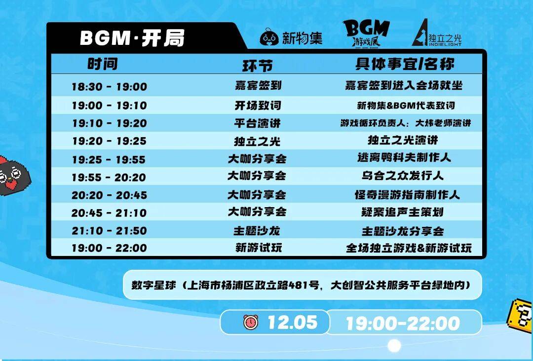 🔧 12月5日 BGM·开局 八福路演& 独游分享会