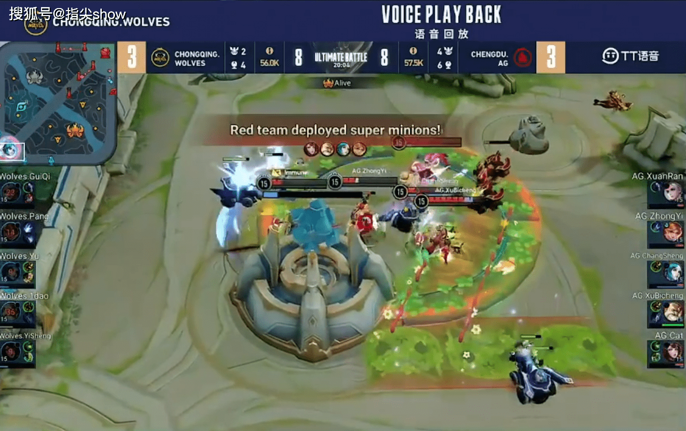 淘汰赛两大夺冠热门无疑是狼队和AG超玩会,但好巧不巧,他们在胜者组的半决赛中再次相遇,之前的那一场对战,是AG战胜了狼队,而这一次事关胜者组决赛的名额,巅峰对决中,AG再次战胜了狼队。