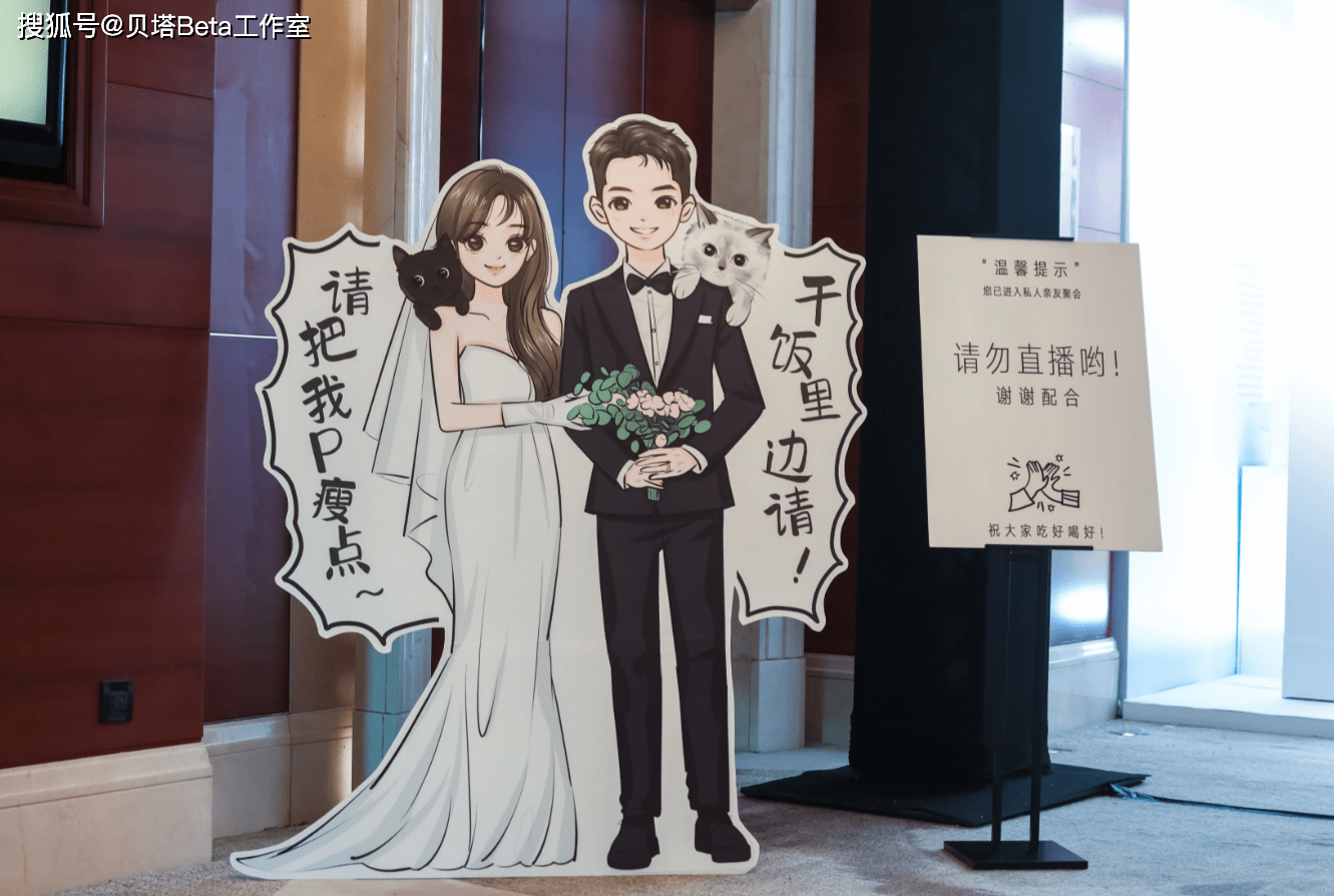 值得一提的是,现场专门立了牌子提醒各位到场的嘉宾:请勿直播。毕竟现场很多圈内人,有些也是主播,不直播应该是希望这个婚礼是属于彼此和亲友们的,不希望太公开。