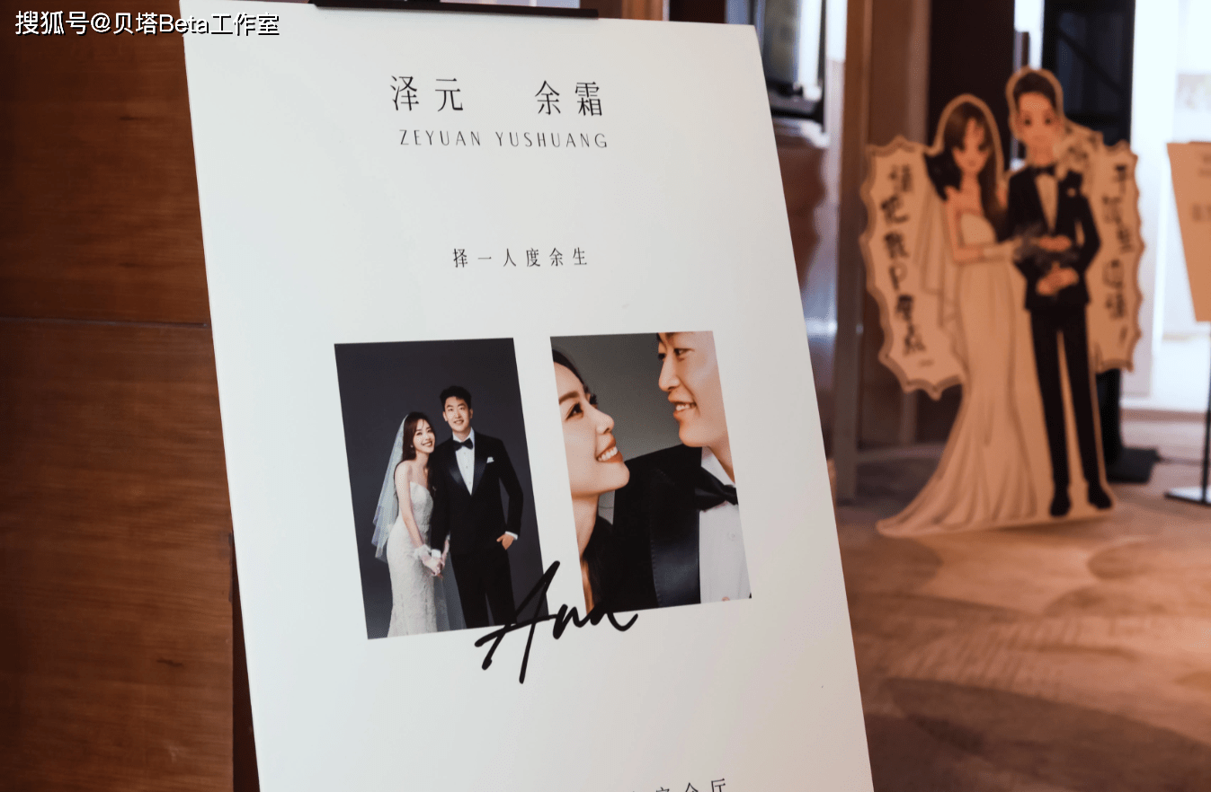 另外还把两人的名字“泽元”和“余霜”中各取一个字,宣言“择一人度余生”,并且配上了两人的婚纱照。
