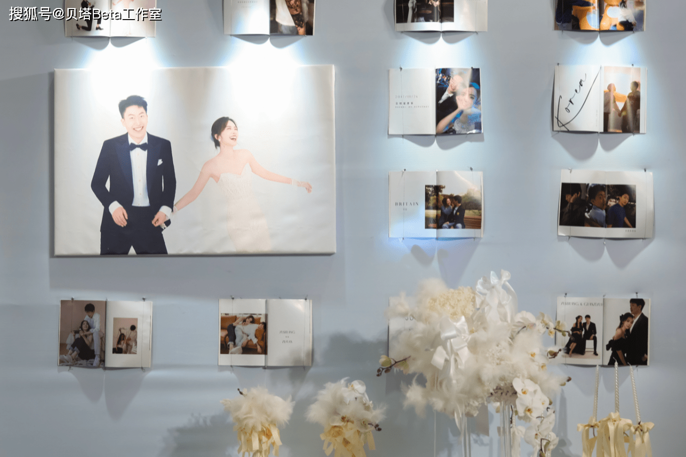 首先是婚礼现场有布置了发非常多两人的合照,有生活的合照,也有之前一起拍摄的照片,当然也少不了这次的婚纱照,都是两人这么多年相处的点点滴滴。