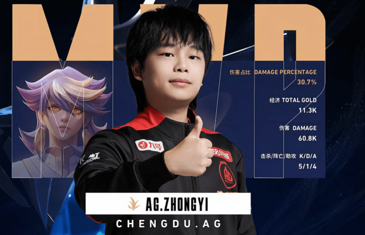 第三局AG拿出大乔双边体系,钟意的曜同样非常秀,基本上一直都是他在吃东皇大招,但因为出了肉装,总是能活下来。并且钟意在和小胖拼惩击也都拼赢了,状态是肉眼可见的好。