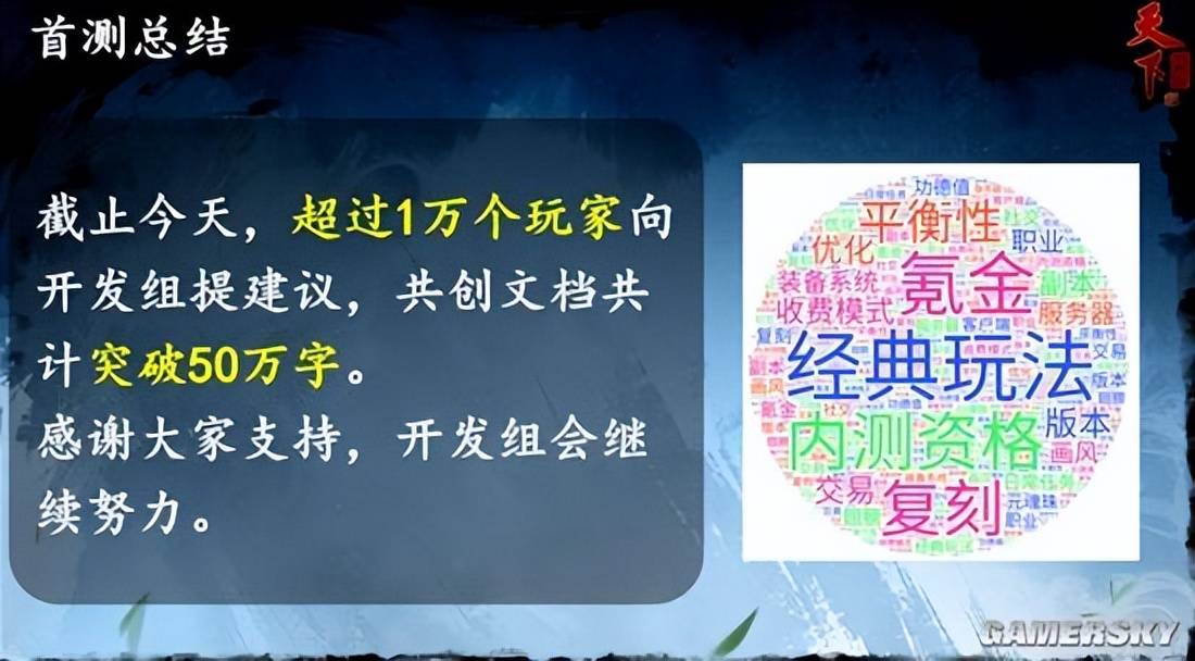 据开发组同步,目前已有超过1万名玩家提出建议,专属共创文档累计字数突破50万字。