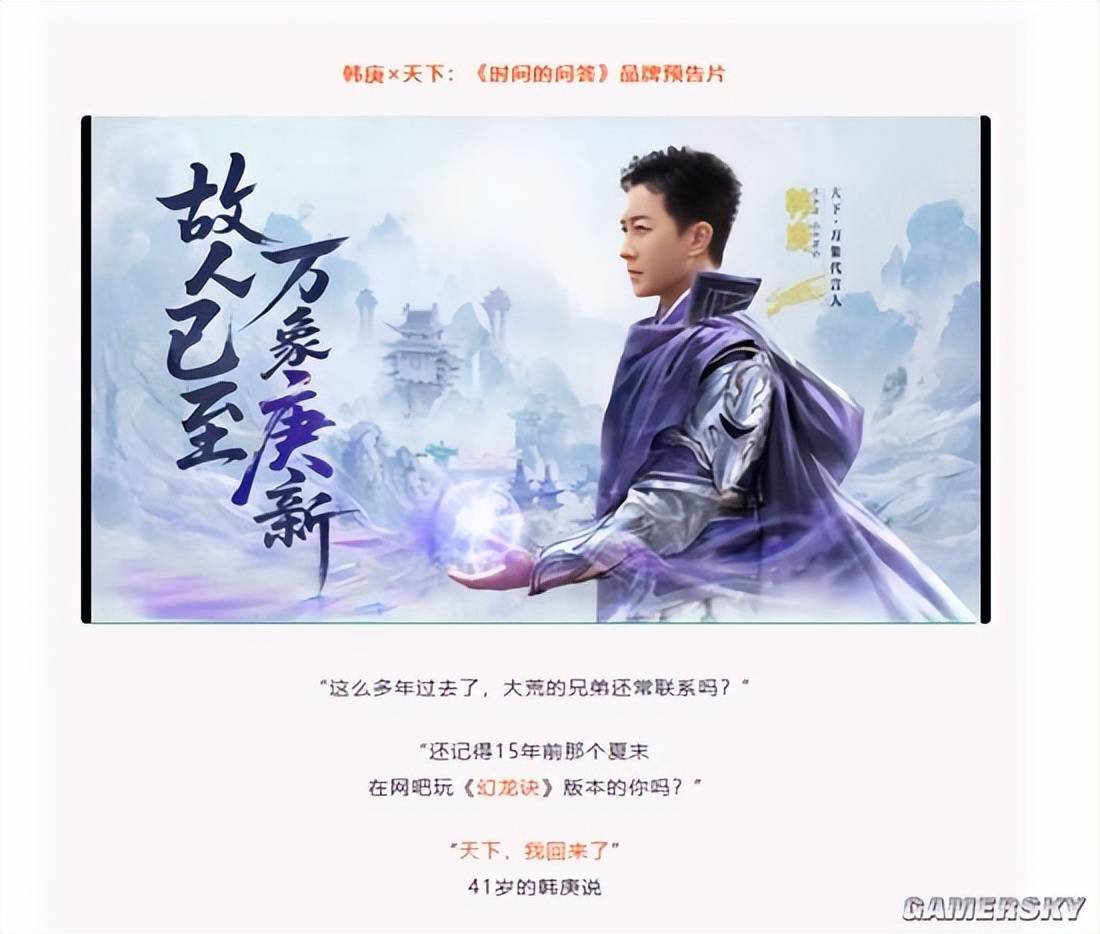 如今,韩庚又一次成为了《天下》系列的代言人