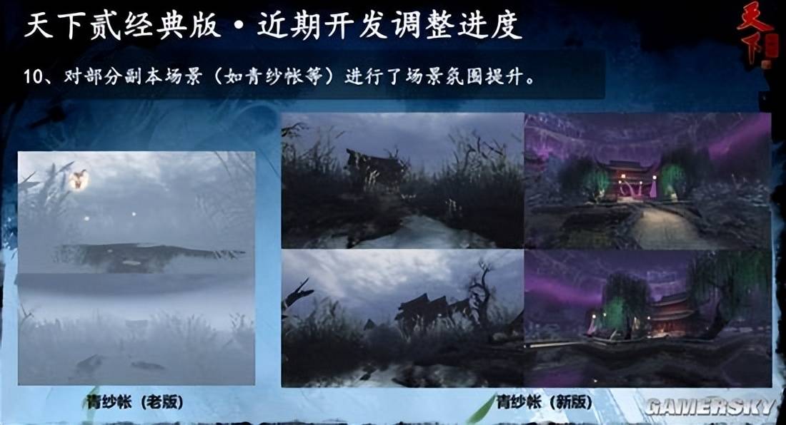 同时,借助技术力的提升,地图场景与副本也经历了大规模翻新,例如2008年的“太古铜门”地图得到了完全重制,其他地图的场景也都在保留原有风格的基础上进行了视觉升级,副本内的战斗演出也得到了更加富有表现力的升级。