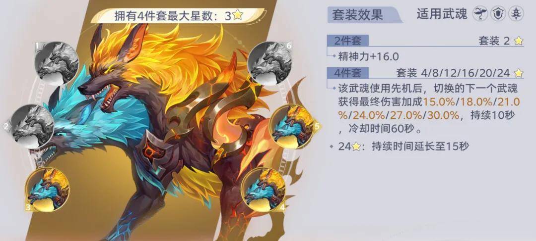 然后排第2的就是焰狼套装了,目前的泛用性非常高,但需要视不同阵容的特色来进行搭配,综合而言意义还是要略逊于万妖套装。