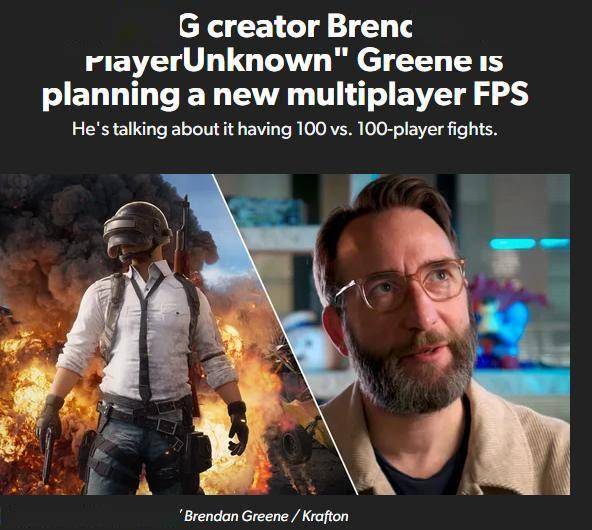吃鸡神作《绝地求生》生父、Brendan Greene日前接受媒体采访,透露了自己的近期计划,表示正计划打造100VS100大规模FPS新游。