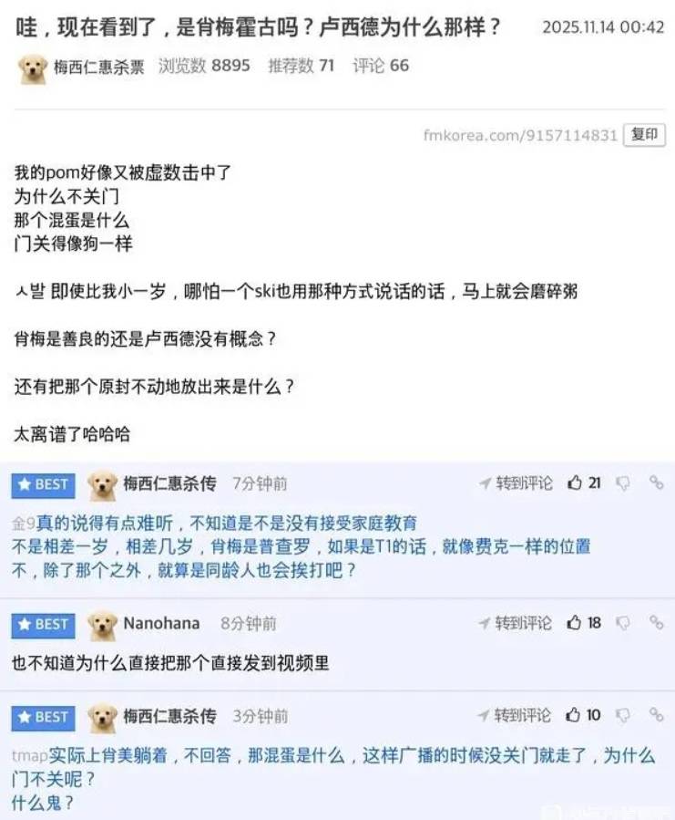 韩网的FMKorea也在讨论这个纪录片,网友总结了纪录片里面出现的几个令人大跌眼镜的事件,ShowMaker作为前辈竟然是遭到年轻选手的反向霸凌。
