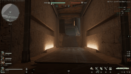 来到D区同样有一座金字塔,并且主打的就是在金字塔内部室内战斗。在测试服中,虽然大家都还不熟悉金字塔内部错综复杂的地形,玩法开发比较有限,不过这反而让我留意起了D区的场景美术。