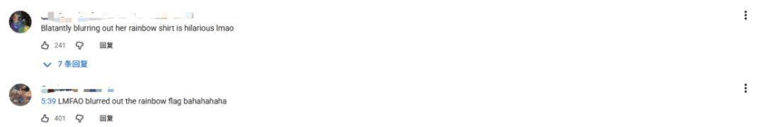 “公然把她的彩虹上衣打上马赛克,真的太搞笑了哈哈。”