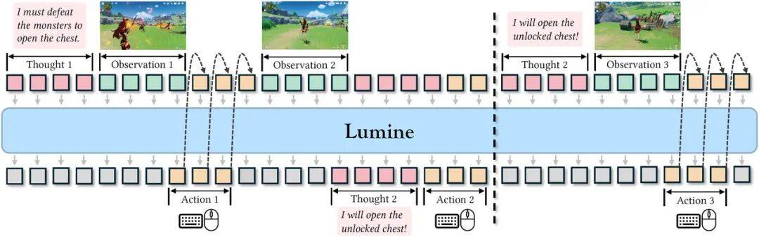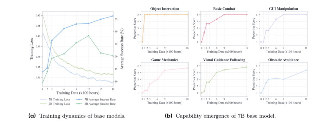得到的Lumine-Base模型,逐步涌现出物体交互、基础战斗、GUI操作等核心能力,为后续理解游戏机制奠定了基础。