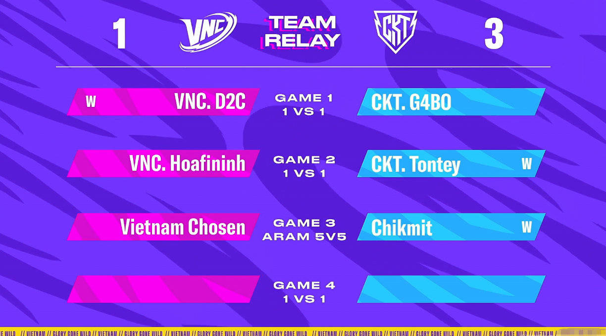 比赛刚开始,两支队伍就打的不可开交。而VNC凭借着更加出色的团战配合可以说是一直压着CKT在打。不过有趣的是,当游戏来到后期时,CKT终于是抓到了VNC的失误并完成反打。也正因为这一波团战的胜利,再加上游戏后期VNC这边复活时间太长,反倒是让CKT完成了翻盘。最终,CKT凭借着3-1的总比分成功击败了VNC,赢下了这一轮比赛的胜利。