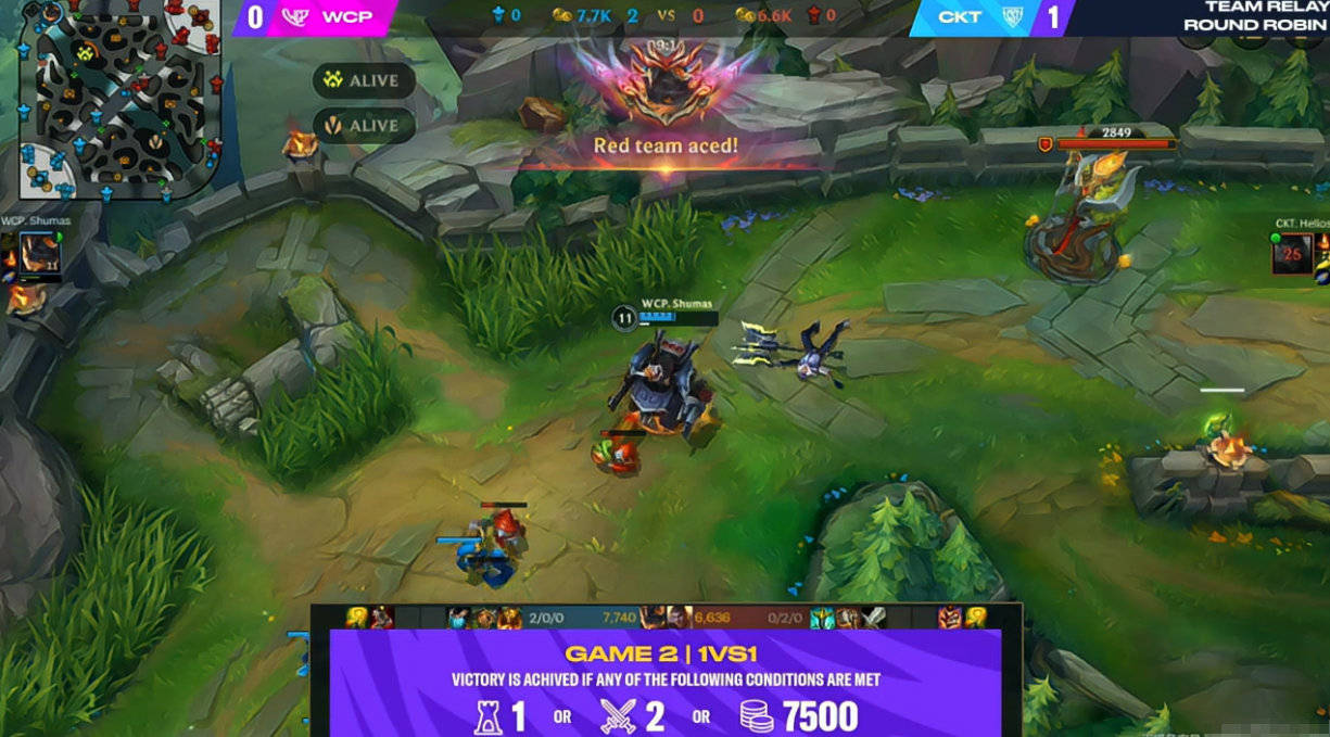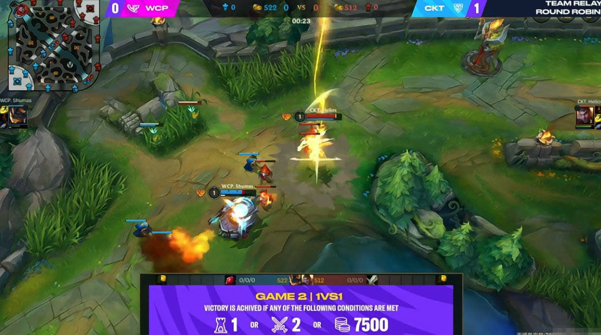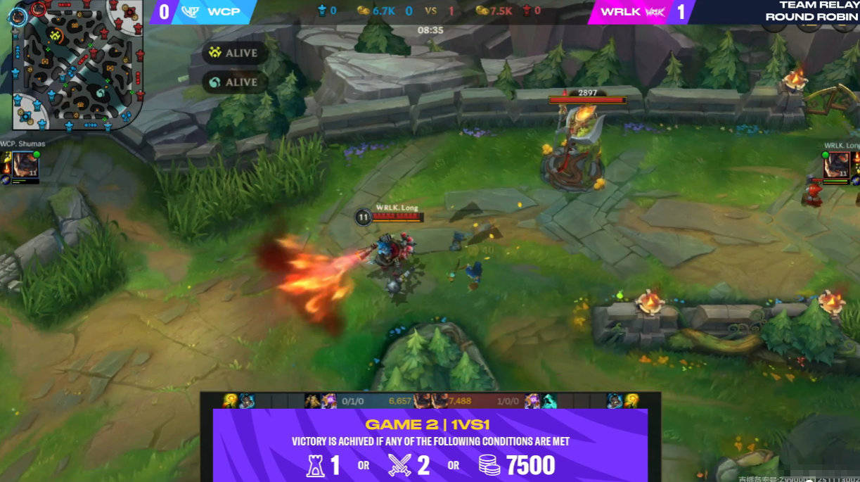 第二局比赛,WCP派出了Shumas选手,WRLK这边则是派出了Long选手。而这两名选手都是选出了兰博。比赛前期,Shumas的兰博还是很有东西的。短短的2分钟左右,就把Long压在了自家塔下。但有趣的是,Shumas打的实在太过于激进,同时估算了自己的伤害能力。在Long选择回城的时候,Shumas直接选择越塔。这波越塔不仅没有完成“击杀”,反倒是让Long在防御塔的帮助下获得了“一血”。在Long拿到“一血”后,场上的局面彻底发生了变化。因为是相同英雄,Shumas在经济落后的情况下并没有办法对Long完成压制。最终,Long凭借着7500的经济优势帮助WRLK拿下了这场SOLO赛的胜利。