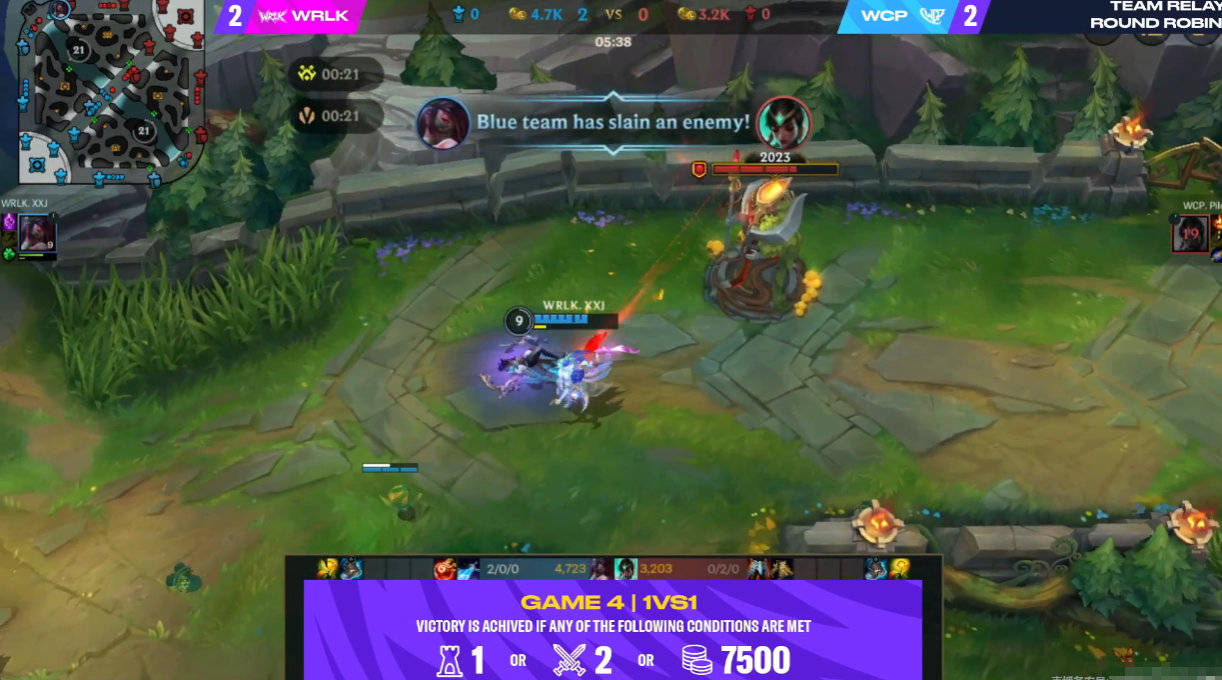 SOLO赛是决胜局,WRLK这边派出了XXJ,WCP则是派出了Pilo。XXJ选出了阿卡丽,Pilo则是拿出了卡尔玛。虽然在对线的过程中,手长的卡尔玛的确在前期有点优势。但打法更具侵略性的XXJ并没有给到对方太多的消耗,更是在短短的时间内就完成了两次“击杀”,轻松拿下比赛的胜利。而WRLK也是在这轮比赛中笑到了最后。