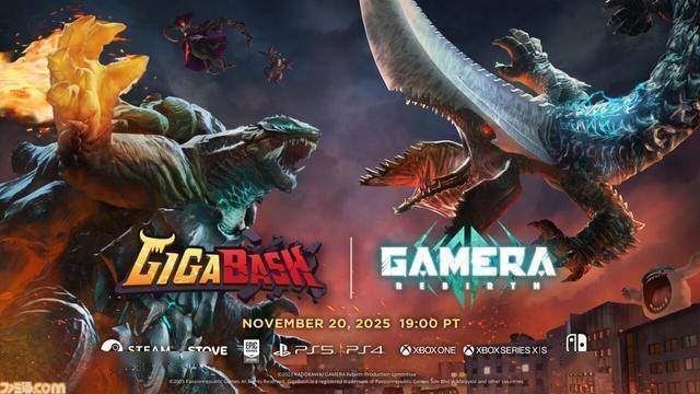 由Passion Republic Games推出的竞技场格斗动作游戏《GigaBash 巨击大乱斗》宣布与《加美拉》展开联动。名为“加美拉 -重生-”的DLC将于2025年11月21日中午12点上线,登陆PC(Steam、Epic)、Xbox、Switch、PS4和PS5平台。
