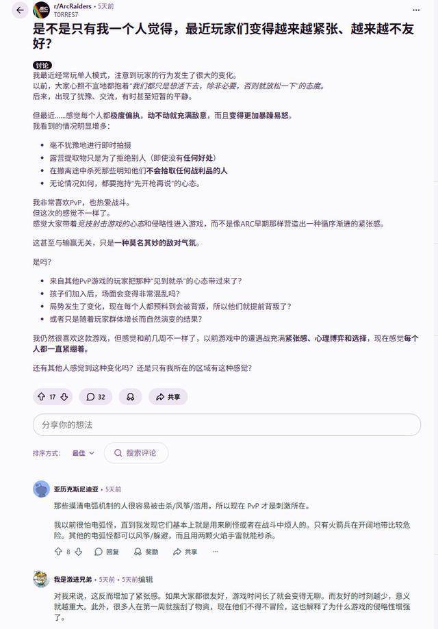 与此同时,11月10日,在海外论坛Reddit上,一些玩家发帖抱怨说,最近游戏中的玩家变得“更加急躁和好斗”。